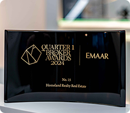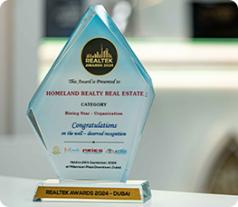شرکت املاک هوملند، برنده جوایز معتبر از ارگان‌های دولتی و خصوصی در امارات، مجموعه‌ای از مشاورین مجرب در بازار املاک دبی است. این شرکت با چشم‌انداز روشن “تبدیل شدن به پیشنهاد اول سرمایه‌گذاران املاک در دبی” و با تکیه بر دانش عمیق، تعهد به اصول اخلاقی، و چندین دهه تجربه حرفه‌ای، جایگاه ویژه‌ای در صنعت املاک امارات دارد.